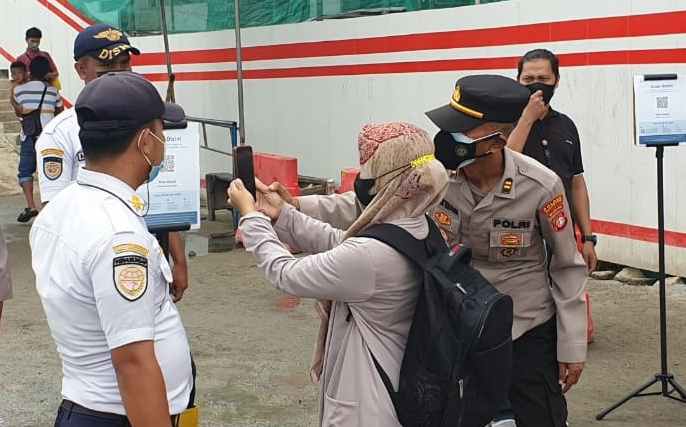 Dia menambahkan, selain pengawasan dan himbauan protokol kesehatan pihaknya juga melakukan cek scan barcode aplikasi peduli kepada semua warga dan wisatawan sebelum naik ke kapal.